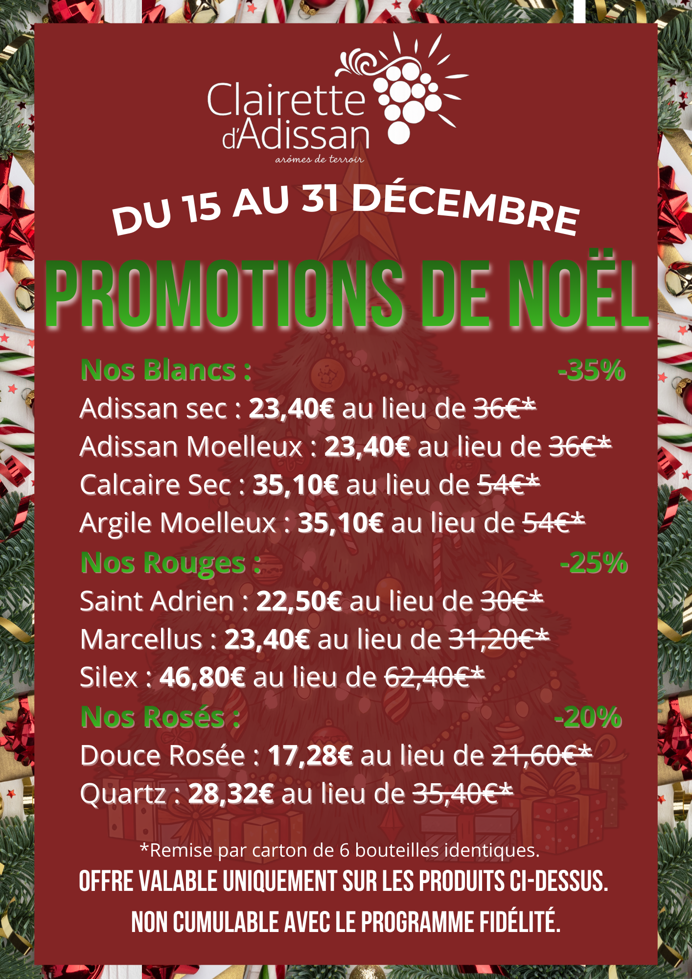 Profitez de promotions exceptionnelles jusqu’à -35% de remise sur nos vins du 15 au 31 Décembre